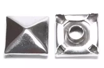 Pyramid square rivets. Choose between nickel or brass plated. Two parts per set, 100 or 1000 sets per pack.