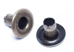 Rolled rim grommets with spurred washers are made for a slightly thicker material than our standard grommets and include a more tapered (rounded) hole. The washer has "teeth" which interlock with the grommet, creating a super strong setting. Great for nylon webbing, leather and other thicker materials. Heavy duty metal construction.